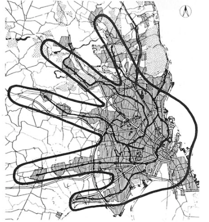 In between the fingers were the green, undeveloped areas. This way, residents could live closer to green spaces, like urban parks and nature reserves.